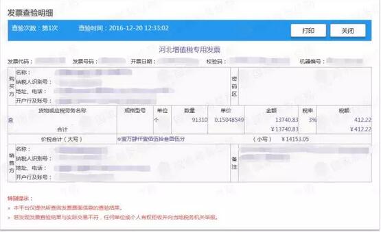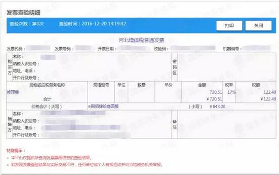 特別提示:《中華人民共和國(guó)發(fā)票管理辦法》規(guī)定:不符合規(guī)定的發(fā)票,不得作為財(cái)務(wù)報(bào)銷憑證,任何單位和個(gè)人有權(quán)拒收。付款方取得發(fā)票后應(yīng)及時(shí)核對(duì)發(fā)票開(kāi)具內(nèi)容是否真實(shí)、項(xiàng)目填寫是否齊全、加蓋的發(fā)票專用章是否與收款方一致。對(duì)于違反發(fā)票管理法規(guī)的行為,任何單位和個(gè)人有權(quán)舉報(bào)。