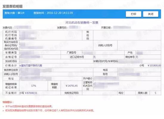 3. 確認(rèn)輸入的信息無(wú)誤后,點(diǎn)擊查驗(yàn)按鈕,系統(tǒng)自動(dòng)彈出查驗(yàn)結(jié)果: